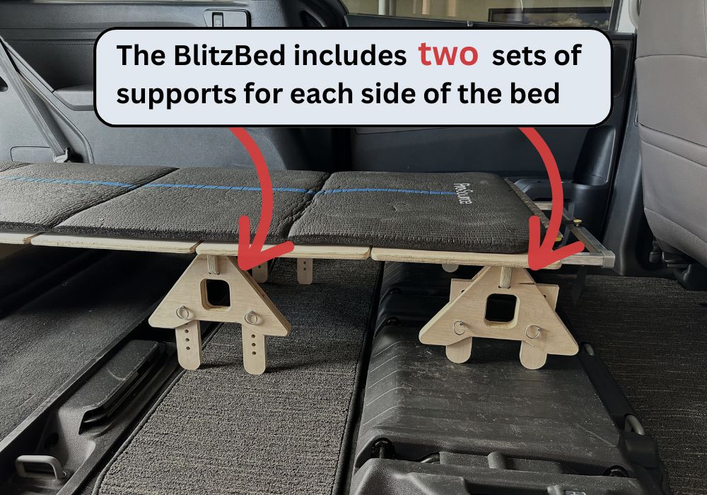 The BlitzBed levels the uneven floor of your minivan to ensure your mattress lays perfectly flat.