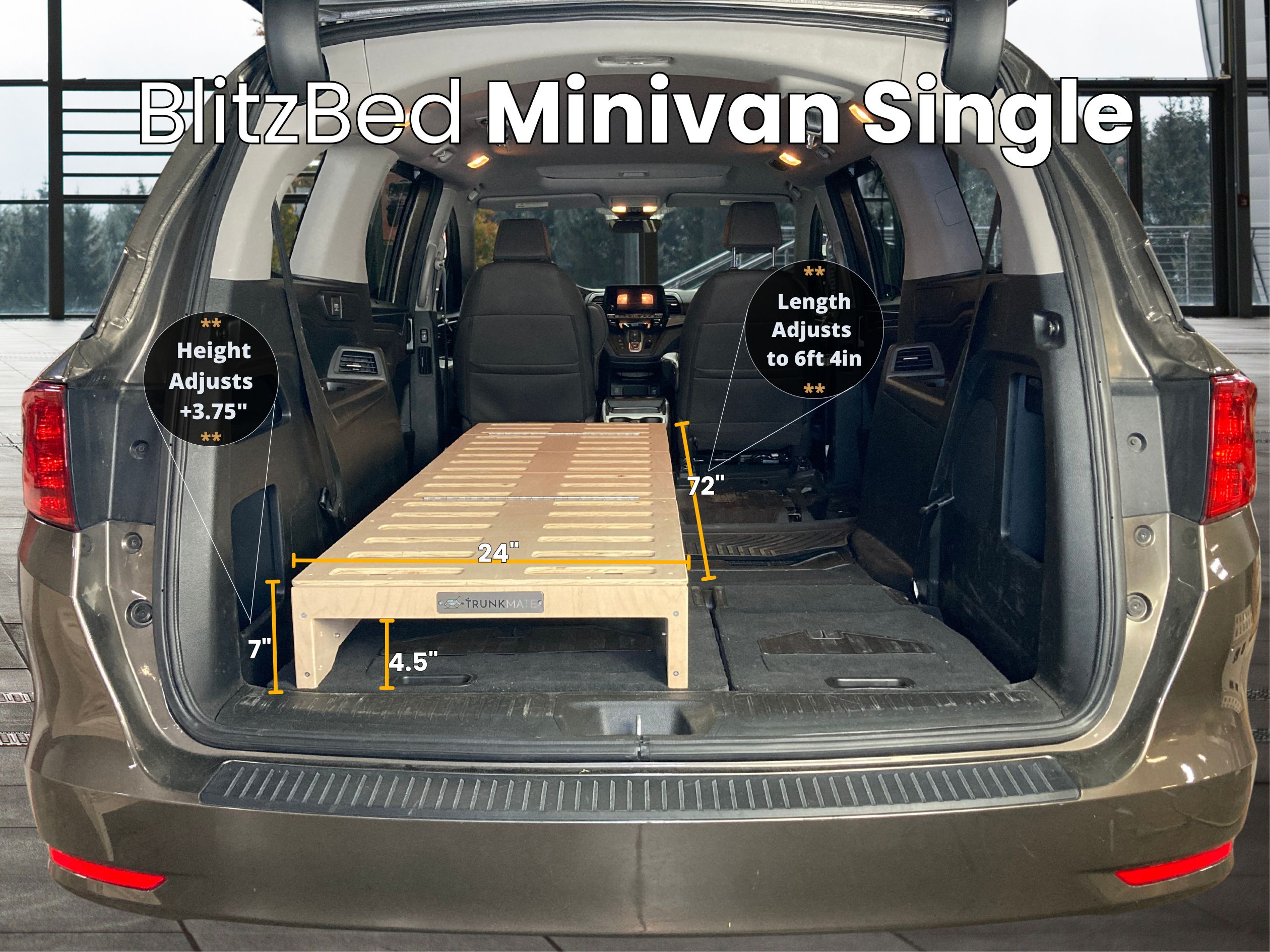 The BlitzBed has incremental adjustability that allows it to fit inside any minivan.